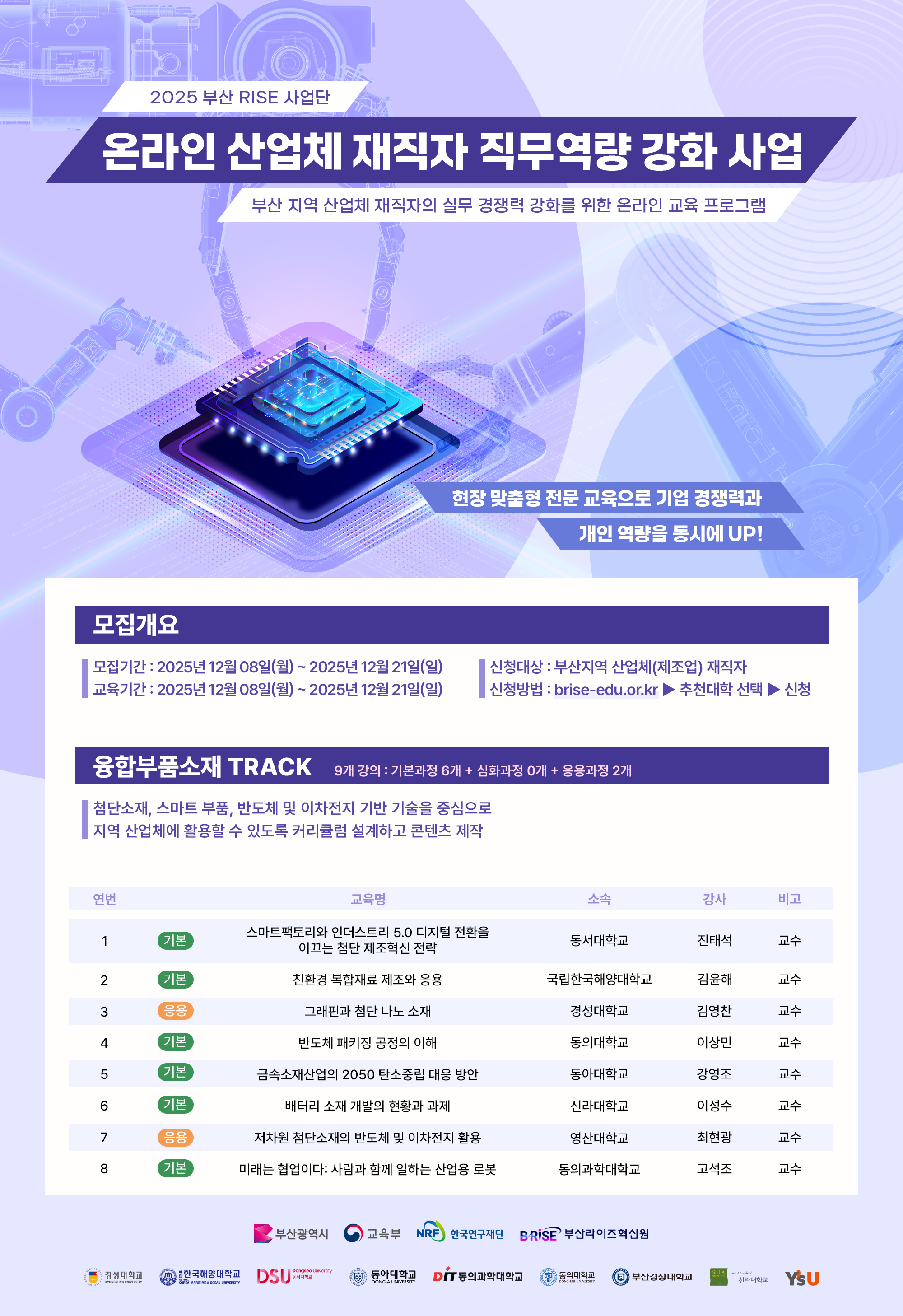 [RISE] 2025년 온라인 산업체 재직자 직무역량 강화 사업 참가자 모집 안내(융합부품소재 트랙)